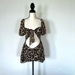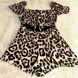 Enjoy animal print this summer with this cheetah cut out romper with a front tie for bust support! This is the size medium from PLT.