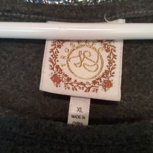 This is cute with some leggings. It hangs lower and is soft and just makes a person feel good. XL. Runs big. In great condition.