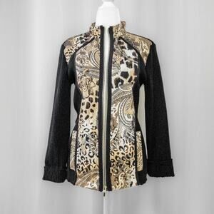 Cheetah and paisley print zip up track sweater