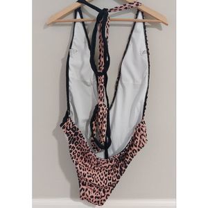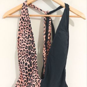 Cheetah and black sexy plunge line one piece swimsuit new