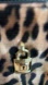 Cheetah print and faux leather handbag with shoulder bag option. This bag measures approximately 12 x 13. This bag has three compartments and one with a top zipper also has full brass details and adorn with a beautiful scarf.