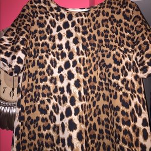 Short sleeved cheetah print blouse with pocket on left side. Worn once and it is in mint condition! Beautiful top