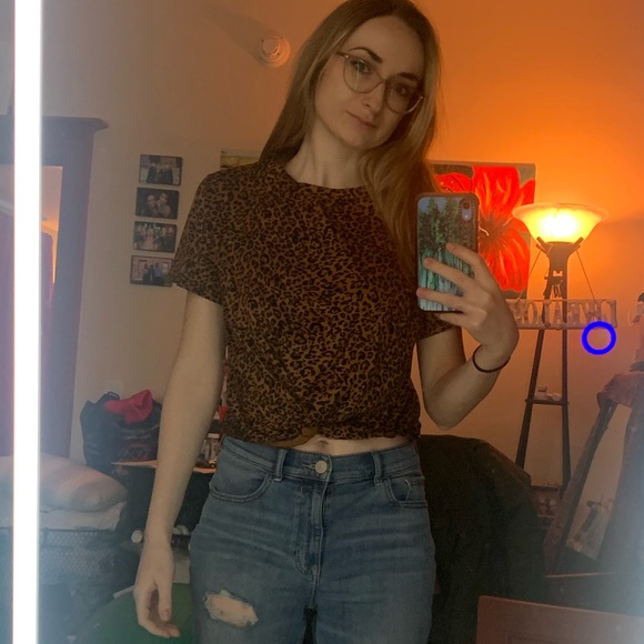 Size small cheetah print crop tee from Shein. Worn and washed once. Mock tie up crop at belly button. Soft tee shirt material.