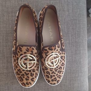 Women's Tahari Cheetah/Leopard Gold Accent slip on sneakers