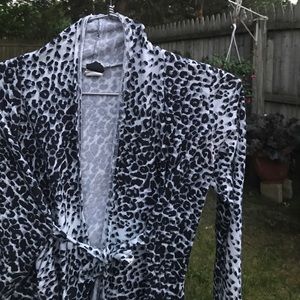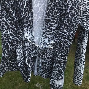 Gray toned cheetah print •ties in front •can also be worn untied •soft cotton blazer like fit •no structure to shoulders •Great condition