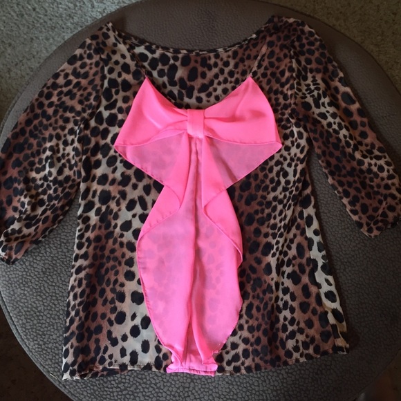 Cheetah print top w/ pink bow on back