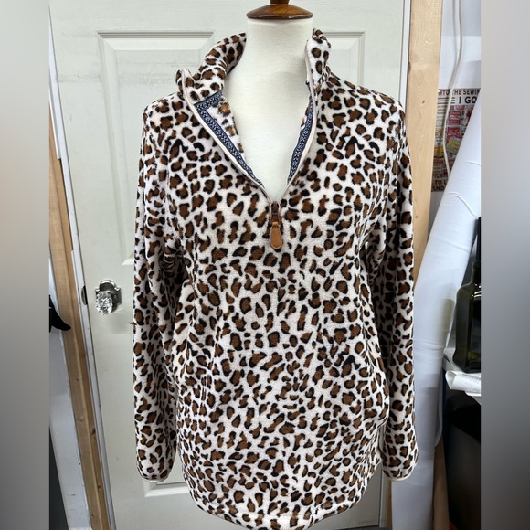 Cheetah fleece quarter zip pull over. Tag says small, but it’s a big small.