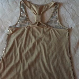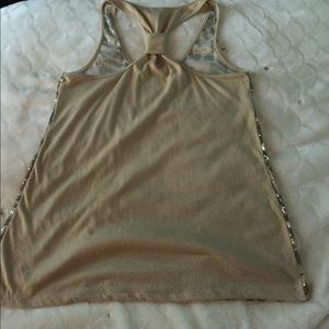 This tank is flashy and sexy to go out in. New Years Shirt! You can chose to wear nothing under but a bra since the back is not see through. I got lots of compliments in this tank. I've always hand washed and Hung to dry. It's still in great shape. 🌟🌟Pit to pit:15" top to bottom:24.5" bottom side to side 20". If you need more, let me know. The gold banndaeu would look nice under this!