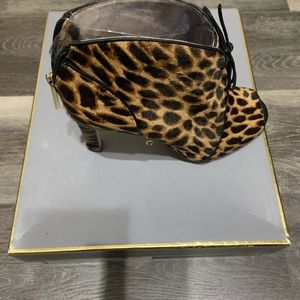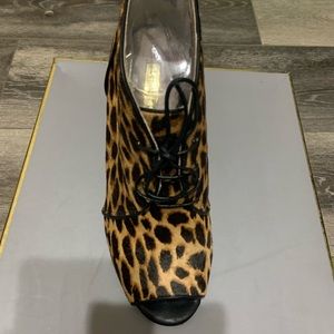 Cheetah/Blk lace up open toe bootie. Size US 5.5