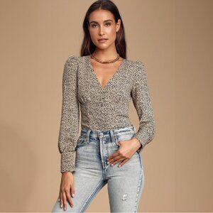 Cheetah-Print Long Sleeve Button-Up Top from Lulus - Size Medium