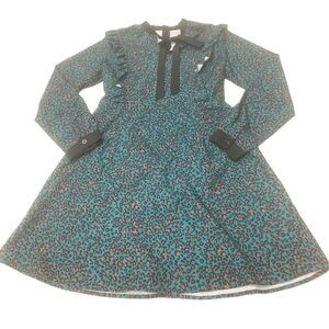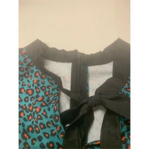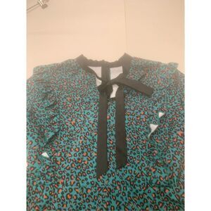 Ladies super cute green orange and black cheetah print long sleeve ruffled detail babydoll style dress. Excellent condition. Ladies size medium.