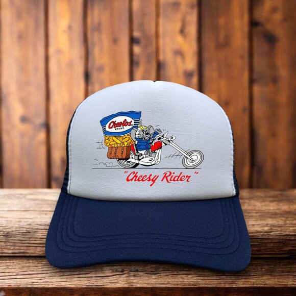 Cheetos Cheesy Rider Unisex Trucker Hat Navy Snapback Chester Retro Logo Hat