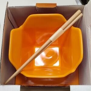 This ceramic ramen dish is square shaped like a take out box. It holds 20oz, is microwave & dishwasher safe. Collectable item, makes a great gift.
