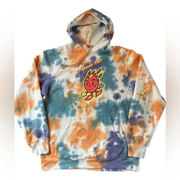 Cheetos Flamin’ Hot Tie Dye Hoodie Multicolor Graphic Sweatshirt Size Large