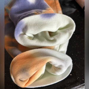 • Vibrant multicolor tie-dye (orange, purple, and teal tones)