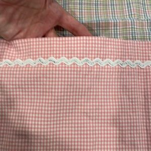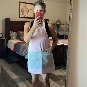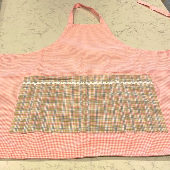 Super cute REVERSIBLE chef apron. Only used once. No stains or flaws. Excellent canvas and sturdy. Two waist pockets in contrasting fabric at waist. Reminds of baking holiday cookies.
