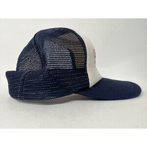 Piling and wear in the front white area. Some soiling on bottom of bill. Slight musty smell from storage.