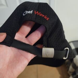 OS fits most, black Chef Works hat. Used only a few times, gently washed and stored. Time to find it a new home where it will be put to work! Oui Chef!
