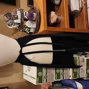 Black full length Server apron with front picket and tie back. 30 1/2 inches long. from a non-smoking but dog friendly home