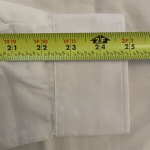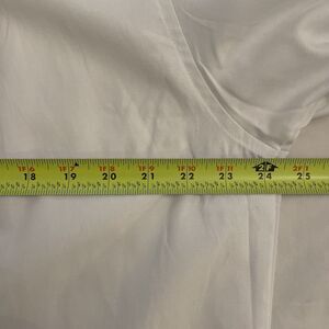 New with tags (NWT), white, 55% cotton, 45% polyester, long sleeve button down shirt by Chef Works in a men's size extra large XL. Front chest pocket. Machine washable. Approximate measurements shown in photos. In excellent, new, unused condition.