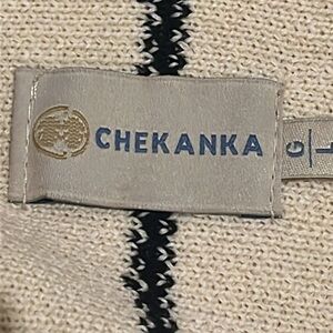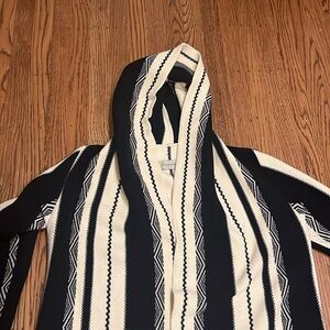 Chekanka hooded cardigan with bold stripes, great fabric, fit, quality.