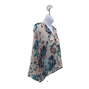 Chelsea 28 Pink Teal Floral Sheer Blouse Womens XS 3/4 Sleeve V-Neck Wrap Front