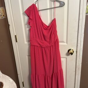 Chelsea 28 Polka Dot Dress Pink. NWOT 1x. One shoulder