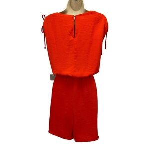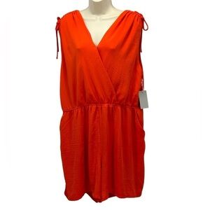Chelsea 28 Sleeveless Rouched Shoulders V Neck Romper - Orange - size 2X