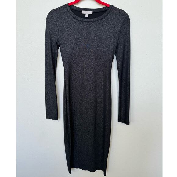 Chelsea 28 Sparkly Glam Black Bodycon Midi Dress Long Sleeve Size XS