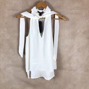 Chelsea And Walker Sheer White Sleeveless Silk Bow Top NWT Size 2