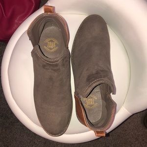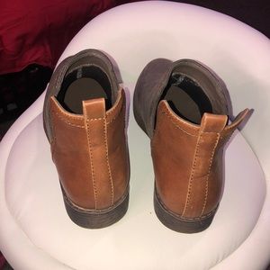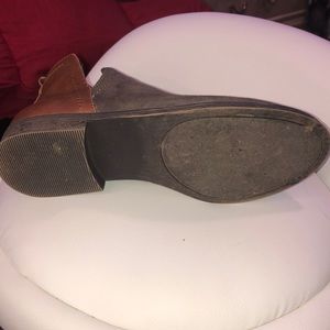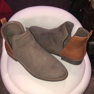Suede booties with a leather back.