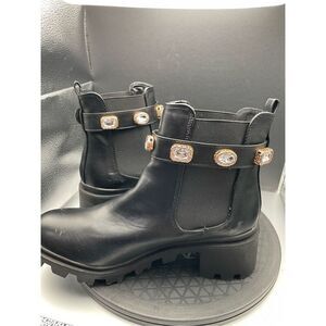 Chelsea Boots Black with Block Heel & Bedazzled Gem Cuff Size 9 Chunky Blingy