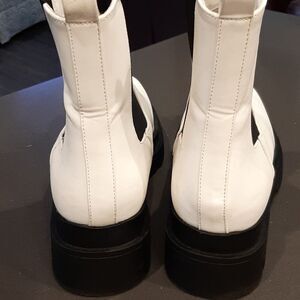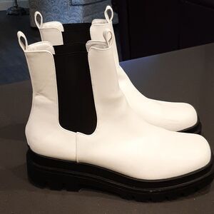 Step out in style with these chic white Chelsea boots. Perfect for any occasion, these boots offer both comfort and elegance.