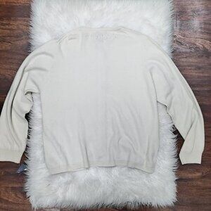 Chelsea Cambell Charter Club White Cashmere Cardigan Floral Embroidery Large, NWOT