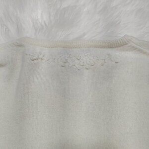 Chelsea Cambell Charter Club White Cashmere Cardigan Floral Embroidery Large