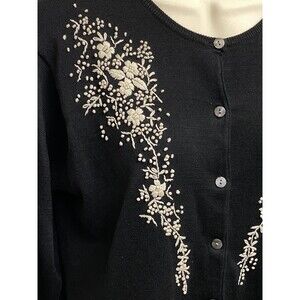 Chelsea Cambell Silk Cotton Blend black cream embroidered Cardigan Sweater Size M Medium