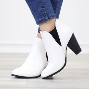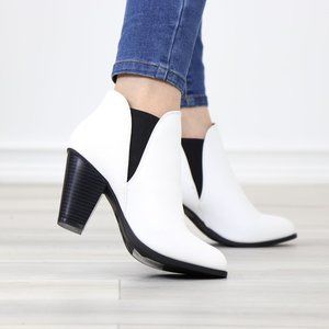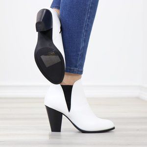Chelsea Cone High Heel Ankle Boots White Synthetic Leather Pointed Toe