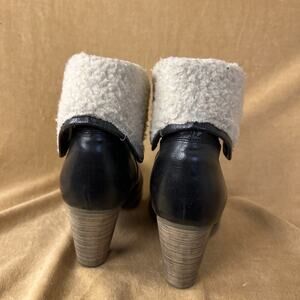 Chelsea Crew Heeled Booties Sherpa Lined Black Lace Up Sz 10