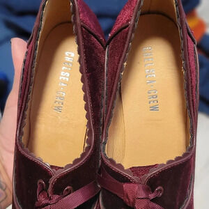 Chelsea Crew Madison Burgundy Velvet Retro heels in pre-owned excellent conditions. Size 40 which is a US 9/9-1/2, See picture for size chart. don't have box