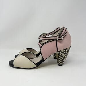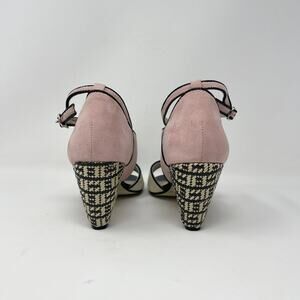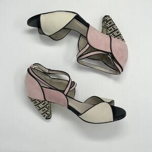 Chelsea Crew Nelly D'Orsay Peep Toe Heel Womens 40/9-9.5 Pink Cream Suede Black