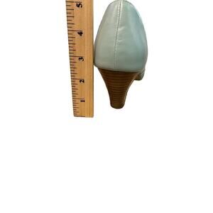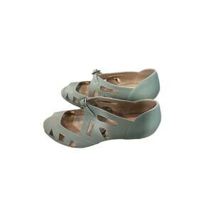 "Chelsea Crew Slip-On Sandal Women's 9.5 Green Leather Buckle Peep Toe Block Heel.
