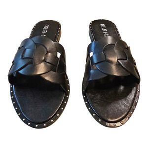 Chelsea Crew Tracy Studded Flats Womens Size 6 Black Open Toe Casual Office