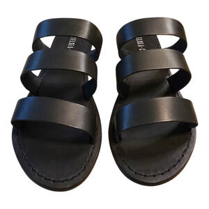 Chelsea Crew Trigg Leather Slide Sandal Womens Size 6 Black Vacation Beach NIB