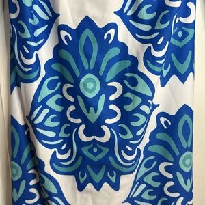 Elegant blue and white dress with a striking pattern. Perfect for any occasion.