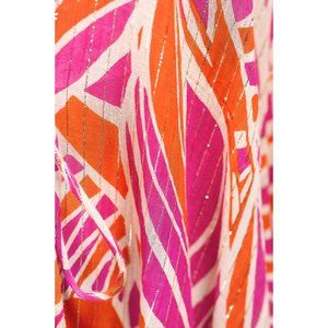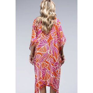 Chelsea Metallic Stripe Palm Leaf Tropical Coverup Open Wrap Kimono Top One Size