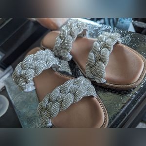 Beautiful and SPARKLY size 9 sandals! Purchased from Shoe Dept to wear for a mountaintop wedding and that's the only time they've been worn outdoors. Please see pictures for condition, tag information, etc.