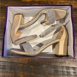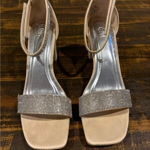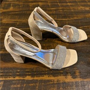 Step out in style with these elegant heels. Featuring a chic beige and silver design, these shoes are perfect for that special occasion. The sparkling silver accents add a touch of glamour to your outfit. Size 8.5