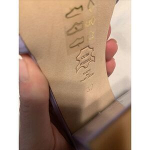 Chelsea Paris Authentic Lavender Purple Patent Leather Block Heel Slides 7