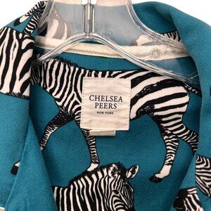 These Chelsea Peers green pajamas feature a fun zebra print, adding a playful touch to your sleepwear collection. Made from soft, breathable fabric, they provide a comfortable, relaxed fit for a restful night’s sleep or lounging around. Perfect for adding some personality and comfort to your downtime. -071
