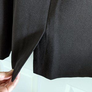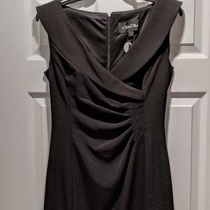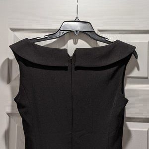A classy little black dress, perfect for every occasion! It is sleeveless with a collar. It has some side rushing for a flattering waist line. It zips up the back with a small slit at the bottom in the back. This has never been worn, New With Tags.